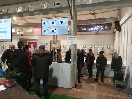 Neben den für die Meisterschaften nötigen 20 Scheiben wurden fünf zusätzlich eingerichtet, worauf Messebesucher selbst schiessen können.